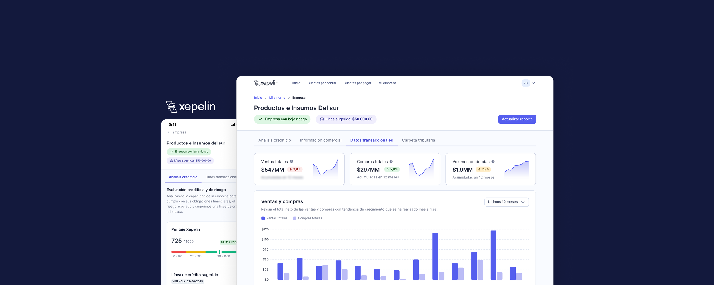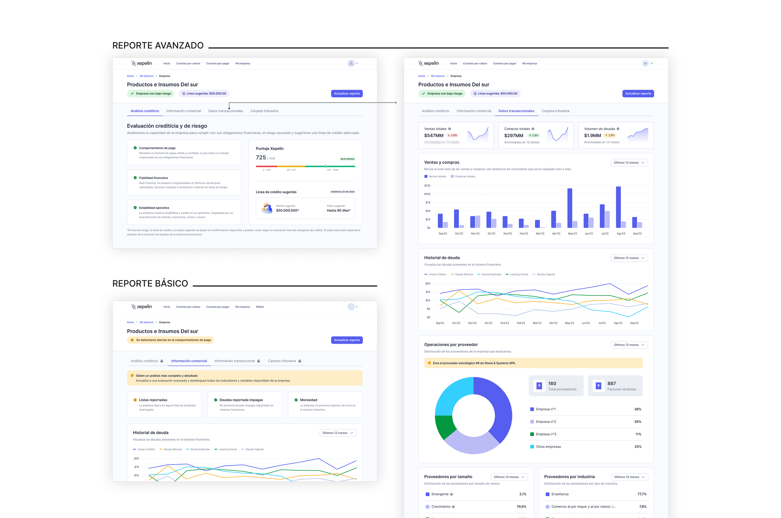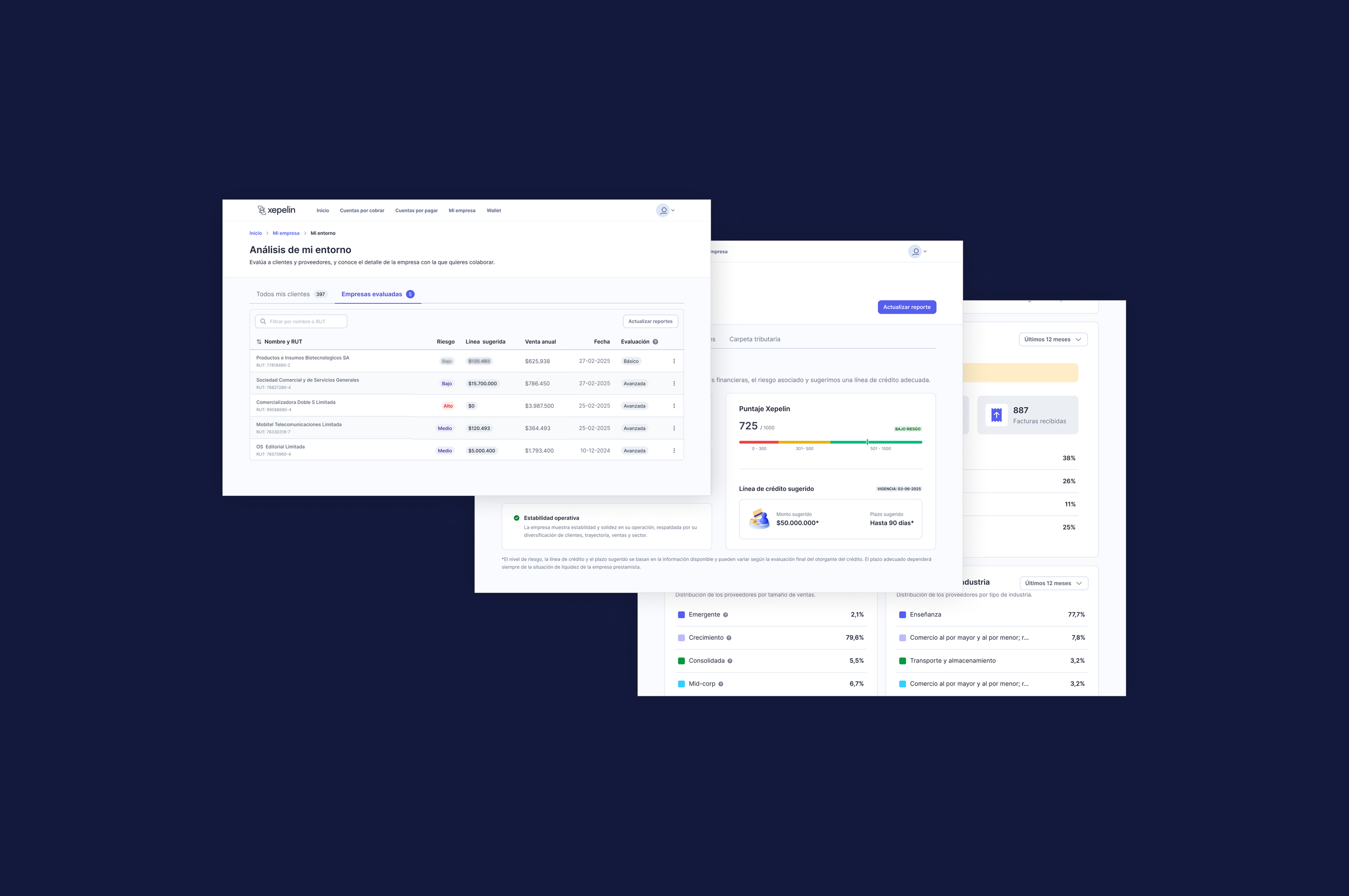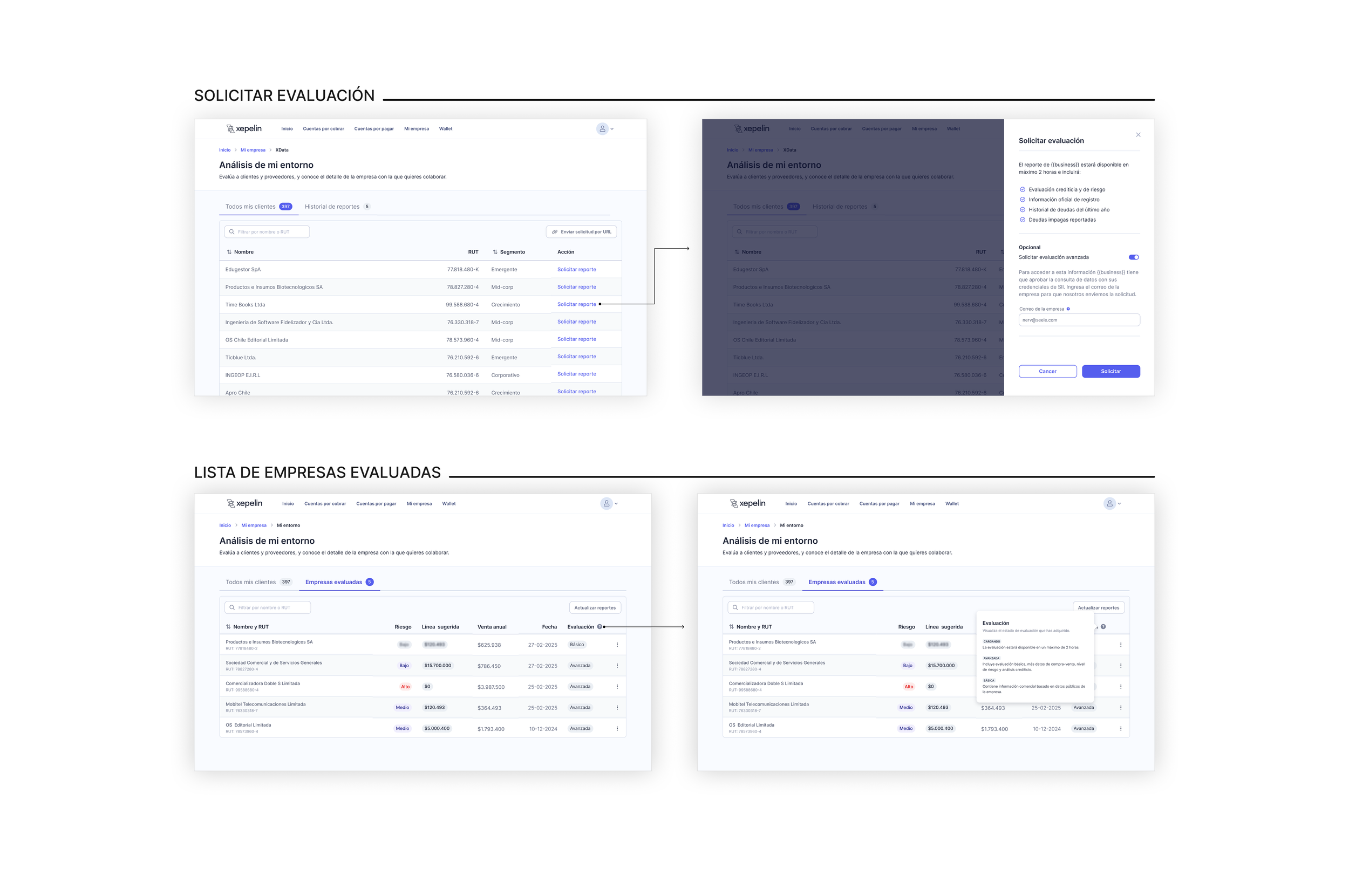 🏢 Industria: Fintech | Riesgo crediticio🌐 Mercado: Chile y México👩🏻💻 Responsabilidades: Research, Ideación, Wireframes, Writing, Testeo y validaciónXepelin es una fintech B2B que ofrece soluciones financieras a empresas en Latinoamérica. Como Product Designer, participé en el diseño de un producto que permite a las empresas evaluar la salud financiera de sus contrapartes antes de otorgar crédito.